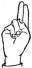 На ћирилици написано МИЉАН БЕТЕГАЛО састоји се из 13 слова [?]. Исписано ћириличном једноручном азбуком за глувонеме: